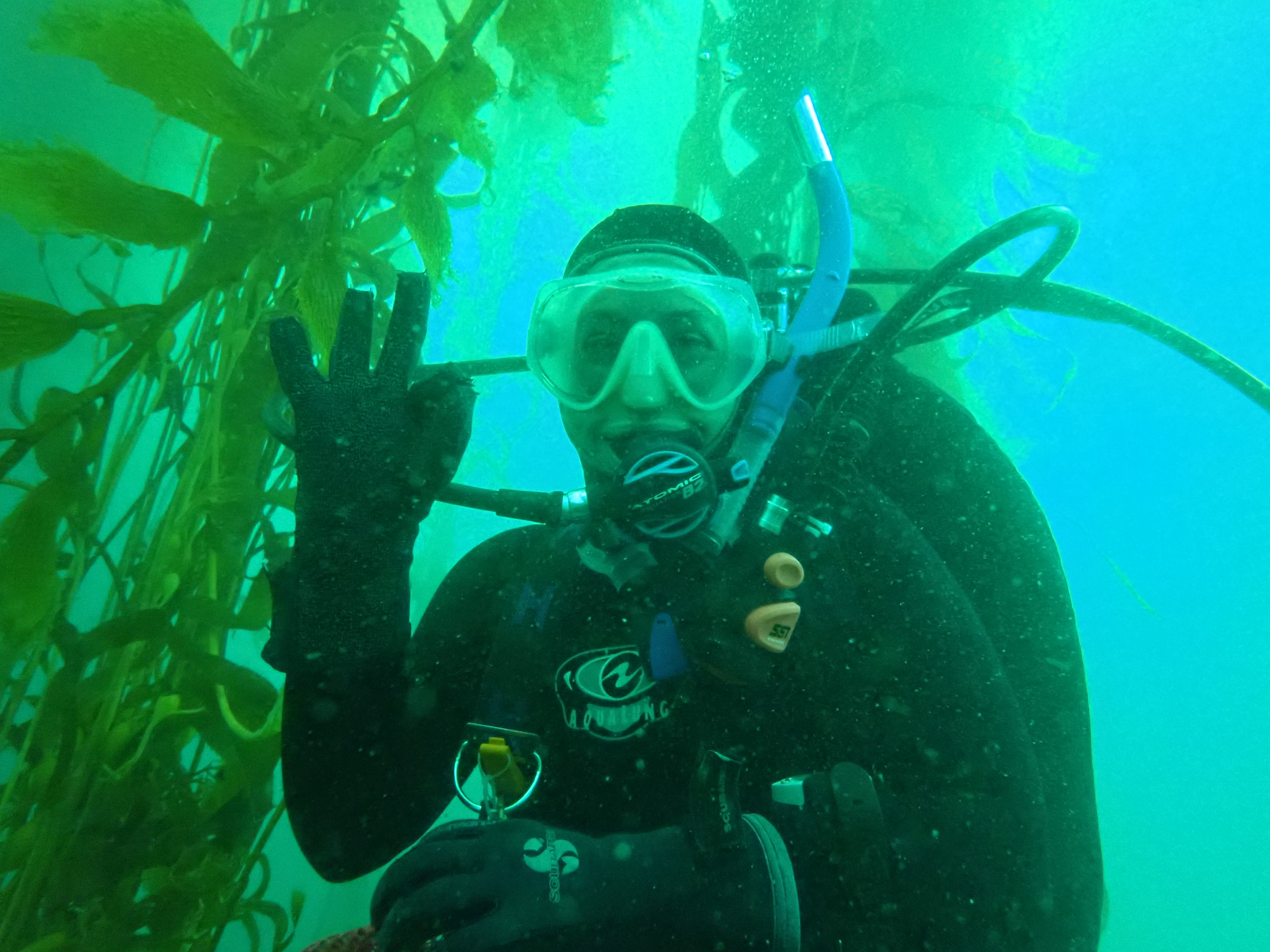 Sarah Traiger diving in kelp forest