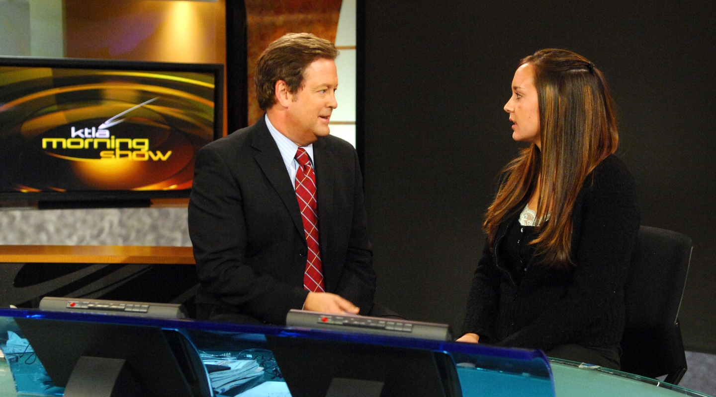 Top photo: Stacie Roshon ’08 with Sam Rubin '82 on the KTLA Morning News set in November 2007. Photo by Kirby Lee