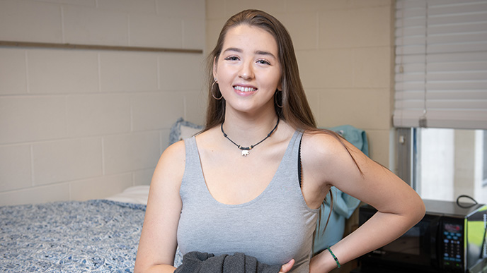 Oxy was at the top of the list for Katie Benmar ’22, who was busy settling into her room with help from mom Claudine Benmar. Her family, from Seattle, Wash., follows a vegan diet, and she is thrilled to explore the many vegan options available through campus dining.