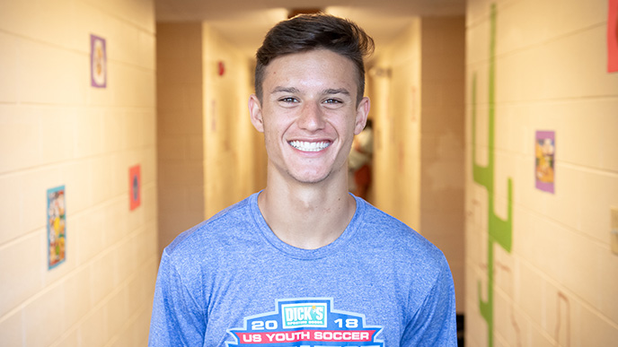 Teagan Jarvis ’22 has been settling into dorm life for weeks now: as a soccer player, he traveled from his hometown of Las Vegas, Nev. early for practices. As an only child, Teagan is now getting used to living next to dozens of classmates, and is looking forward to being on a residential campus.