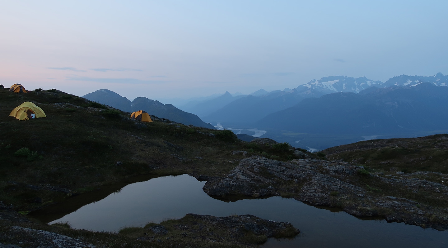 Main image: field work site for Occidental geology researchers in the Stikine River area of British Columbia, Canada.