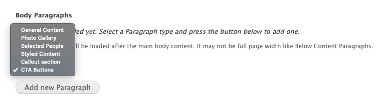 You can add one to three button links within a single CTA Button paragraph, and they can be placed in the body region and/or below content region on Landing Pages and Inside Pages. The width of all buttons on the page will automatically adjust to the size of the button with the longest text.